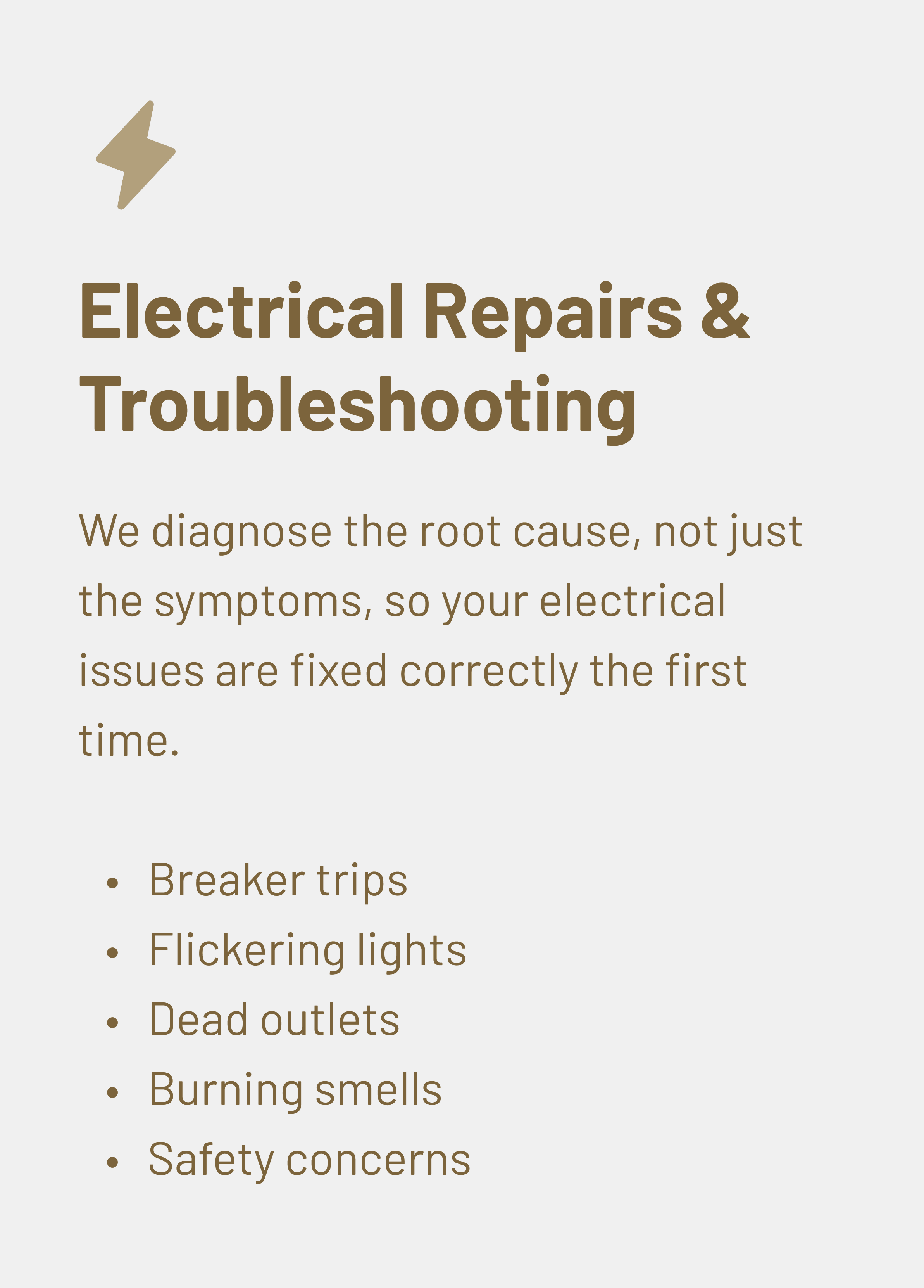 Tripping breakers, flickering lights, outdated panels, or planning a home improvement? Electrical problems don’t fix themselves and they can become safety risks.